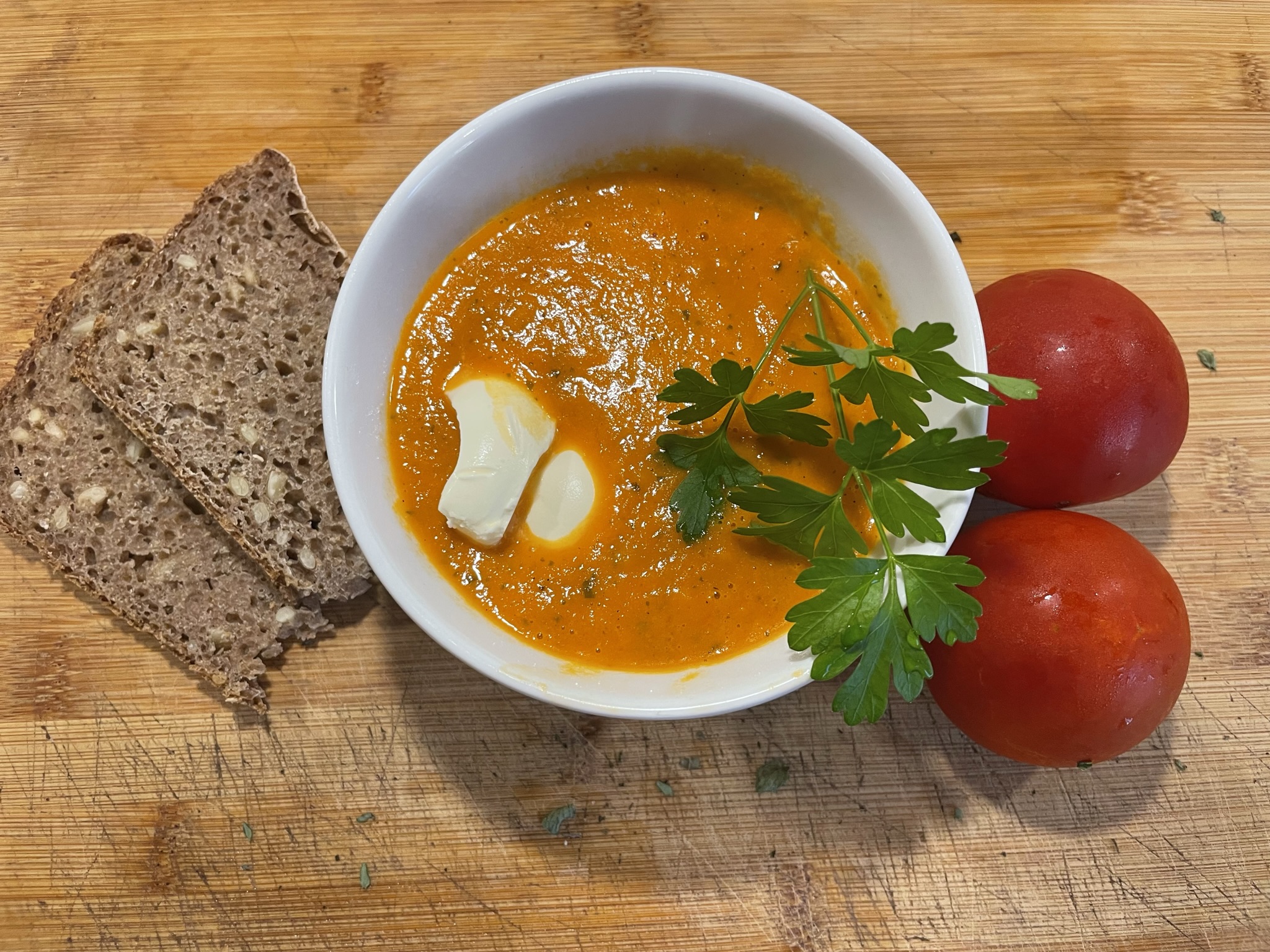 - Die Suppe bei mittlerer Hitze etwa 20-30 Minuten köcheln lassen, bis die Tomaten weich sind.